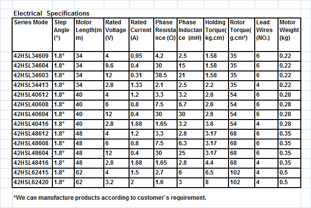 | Product name : NEMA 17 42mm 1.8° Hybrid Stepper Motor | |